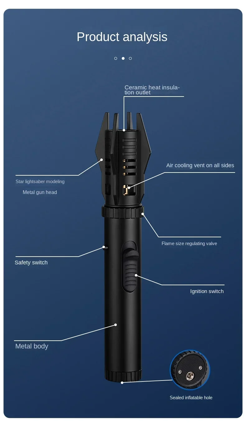 This 360° torch gas lighter delivers powerful and reliable ignition for outdoor and daily use.